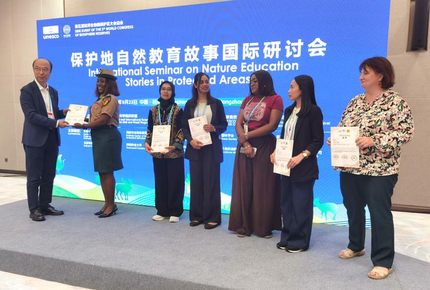 Receive certificates of the “Good Practices on Women’s Contributions to Nature Education in Protected Areas” from Prof. LIU Weidong, Executive Director of ANSO